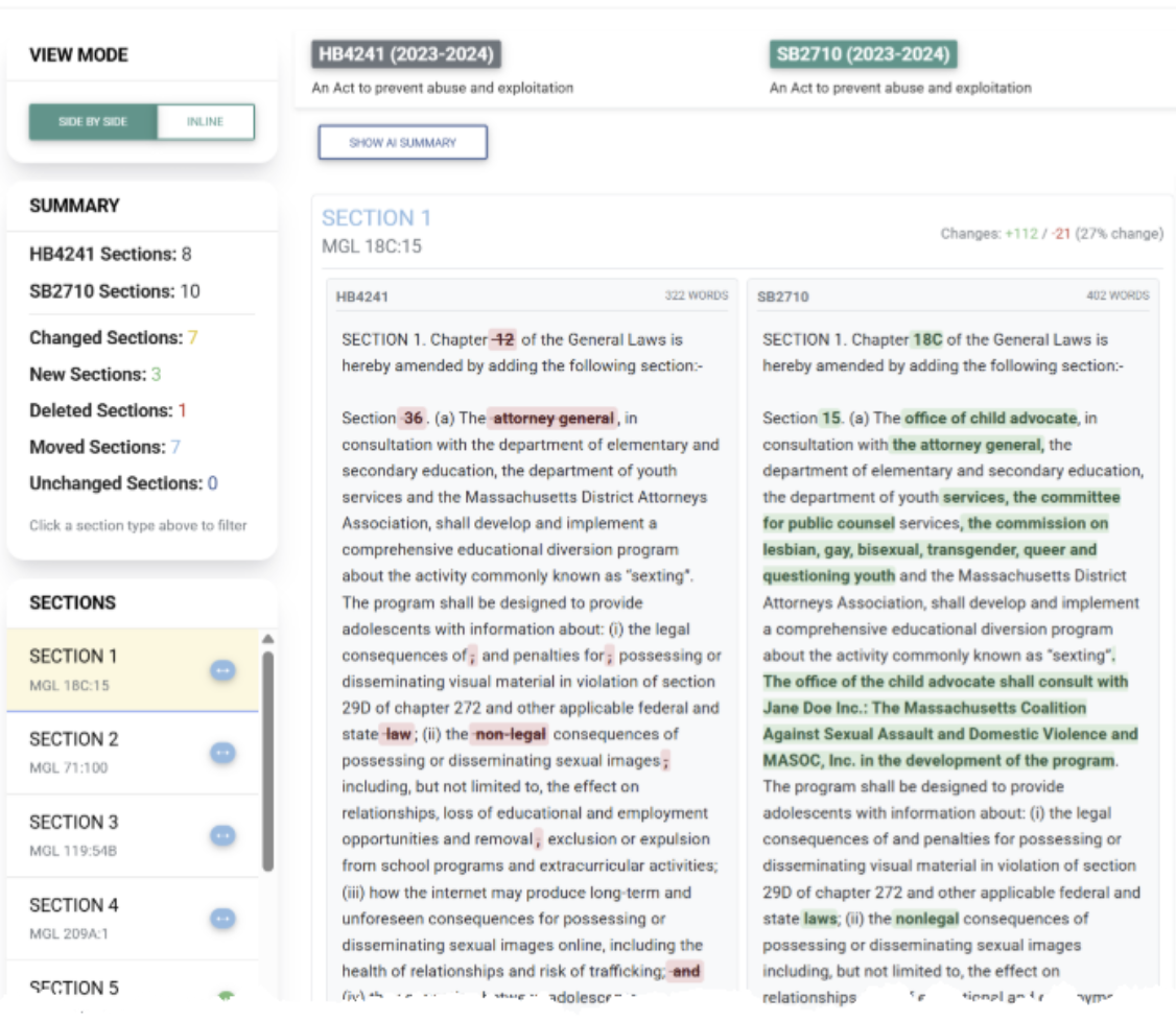When a bill modifies existing law, it may refer to line numbers or paragraphs in prior legislation. This makes the text precise but harder to follow without context. Tools like MassTrac’s Smart Compare can be invaluable here, helping you see exactly what has changed.