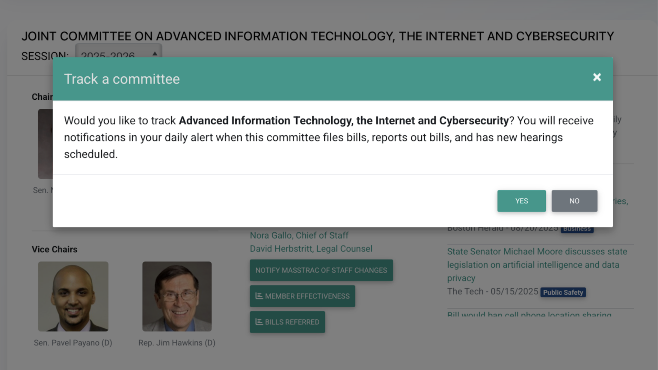 With one click, you can choose to track a committee. That means you’ll get instant alerts if: