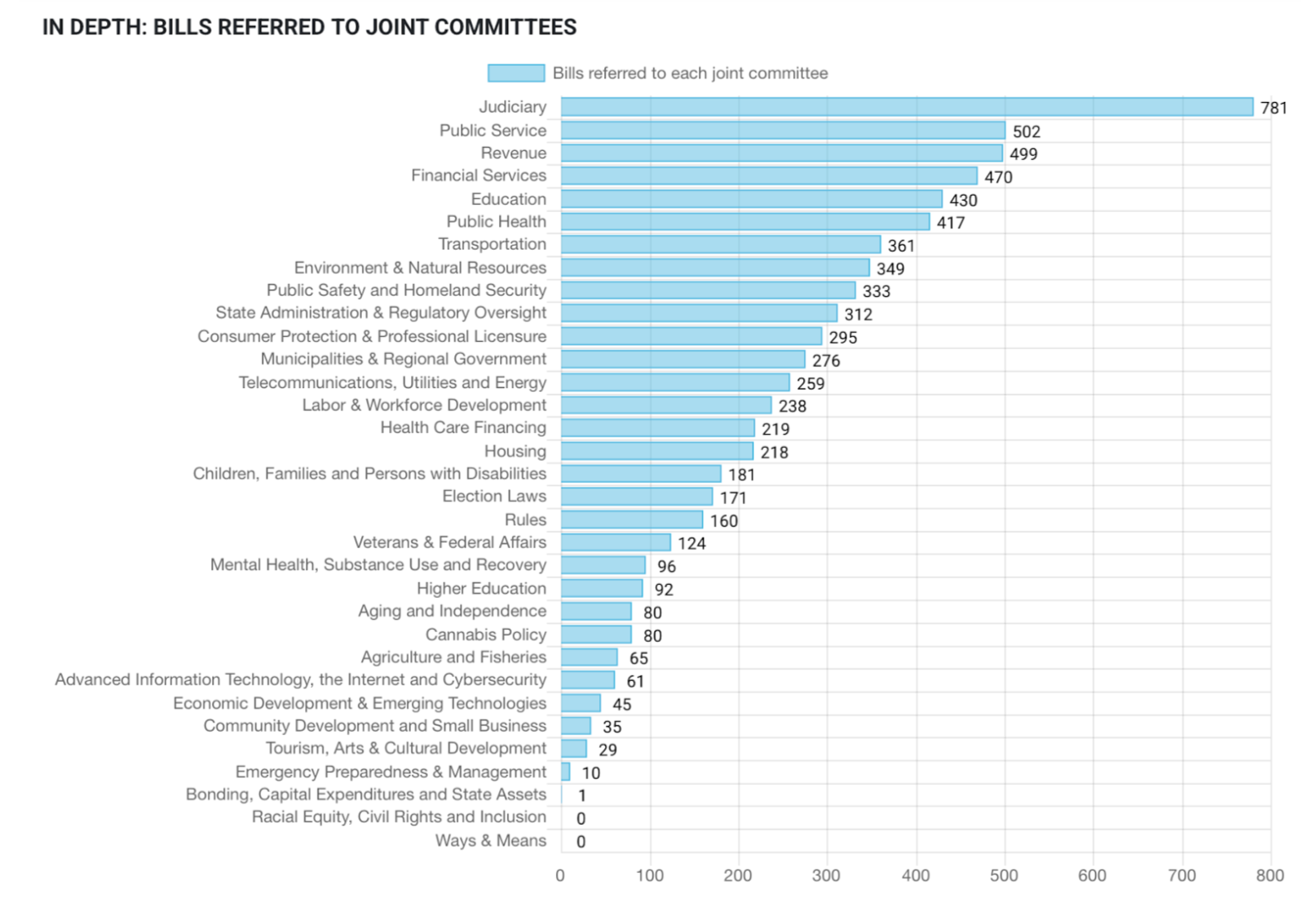 Bills Referred: Compare the number of bills sent to one committee versus others, giving you a sense of workload and influence.